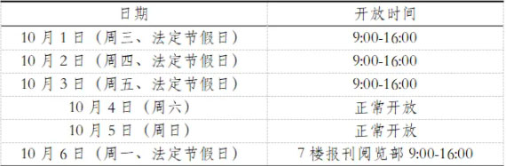 2025年10月1日-10月8日国庆中秋放假期间,开放时间如下: